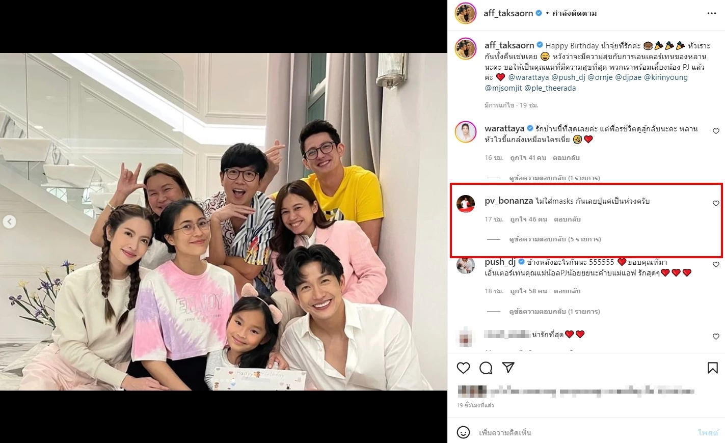 โดยคุณปูเข้ามาคอมเม้นแสดงความคิดเห็นเอาไว้ว่า ไม่ใส่masks กันเลยปู่แค่เป็นห่วงครับ ในเวลาต่อมาคุณแม่ก็ได้เข้ามาตอบกลับว่าขอบคุณที่เป็นห่วงค่ะคุณปู่ 🙏🏼❤️❤️