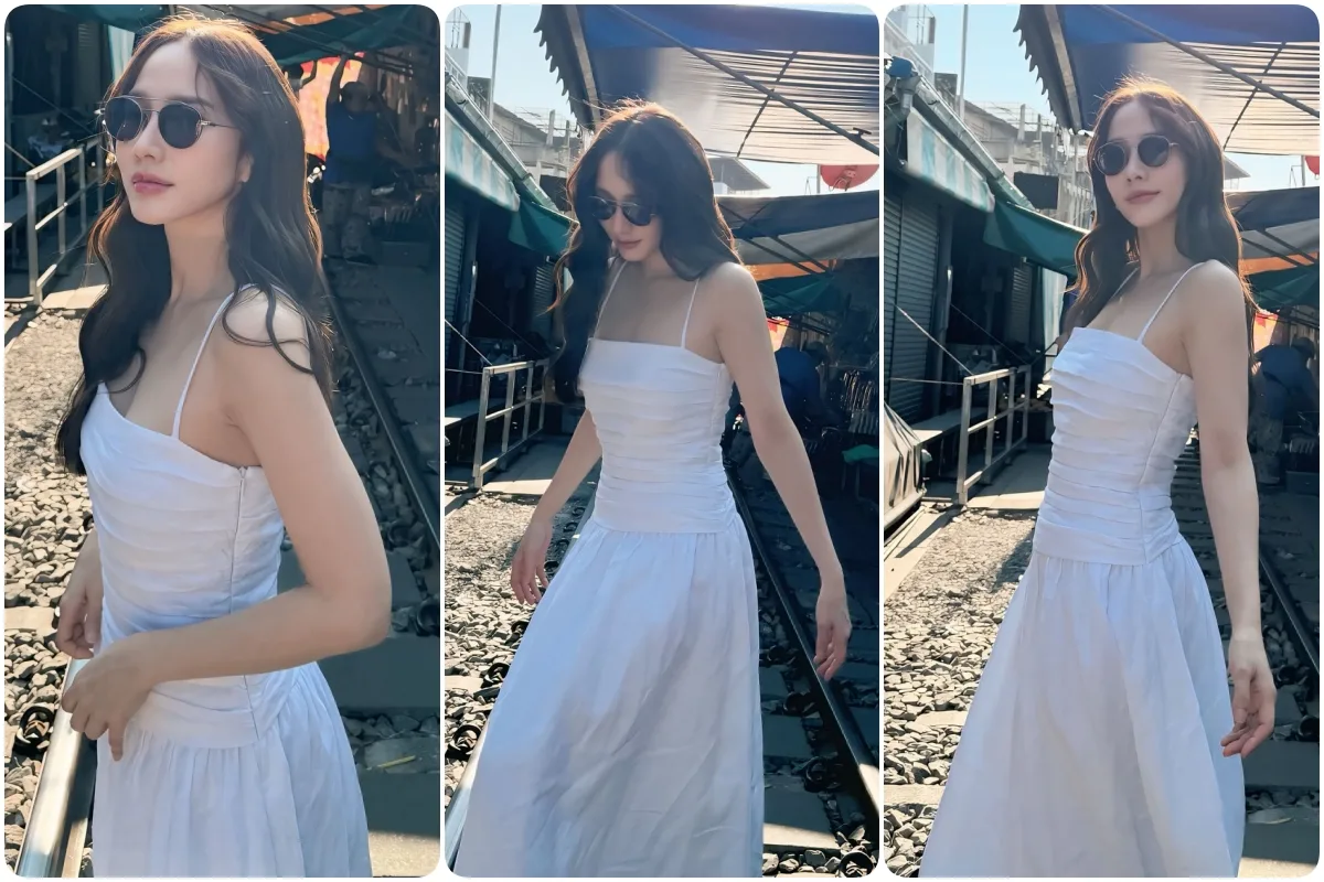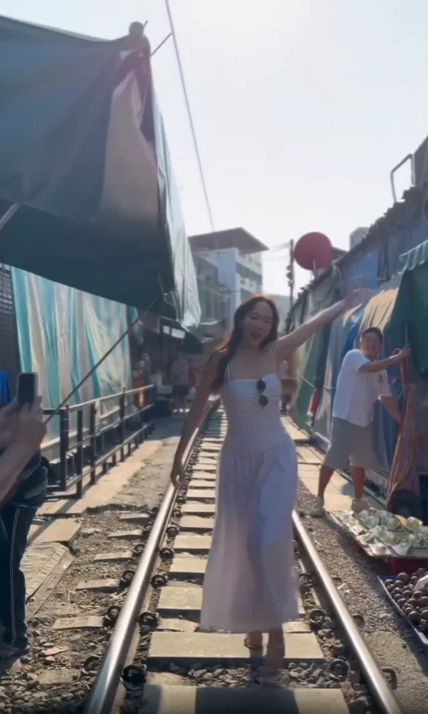 โดย อั้มพัชราภา ได้ใจความสดใสพร้อมรอยยิ้มสวยๆระบุแคปชั่นเอาไว้ว่า ไปตลาดร่มหุบ ⛱️แต่มาไม่ทันรถไฟ พี่ๆร้านแถวนั้นน่ารักมาก ช่วยกันหุบร่มให้ 🥰😄 ขอบคุณมากๆนะคะ💕