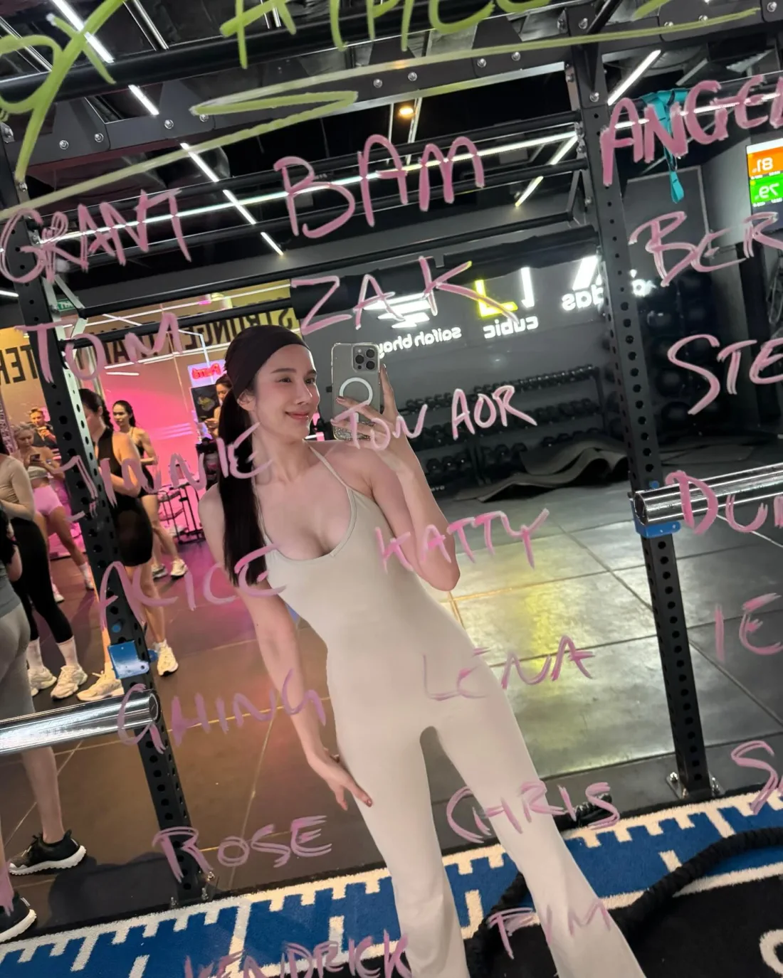 ล่าสุดออกมาโพสต์ภาพในชุดออกกำลังกายรัดรูป พร้อมระบุว่า ในเมื่อหมูกระทะคือของโปรด ก็ต้องลงโทษตัวเองแบบนี้ 💪🏻🏋🏻♀️
