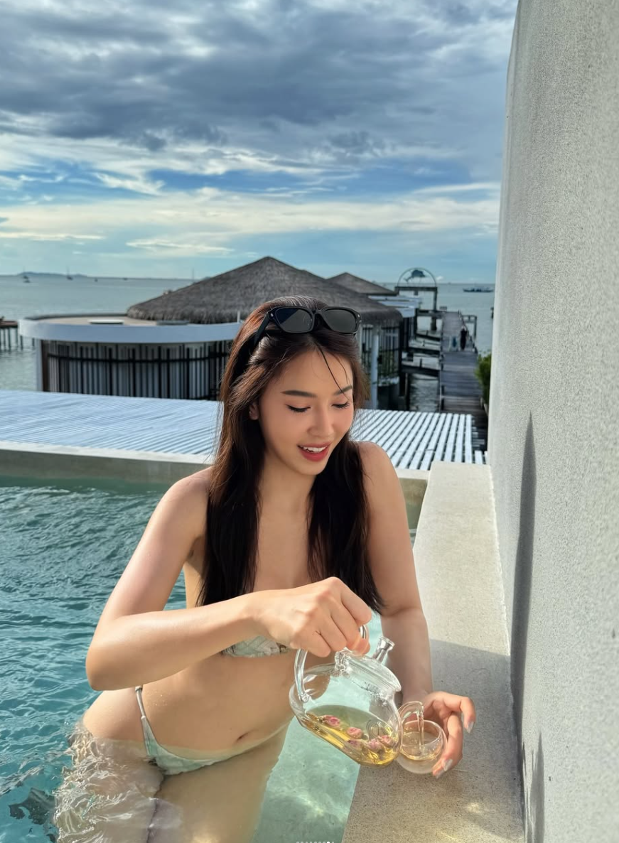 งานนี้กิ๊บขอสลัดผ้าใส่บิกินี่ตัวจิ๋ว ลงเล่นน้ำคลายร้อน พร้อมแจกความสดใสแบบจัดเต็ม แต่ละช็อตที่ปล่อยออกมา ทั้งหุ่นเซี๊ยะเป๊ะ ผิวขาวเนียนสะดุดตา บวกกับเสน่ห์ที่เต็มไปด้วยออร่า จนทำเอาโซเชียลแทบลุกเป็นไฟเลยทีเดียว