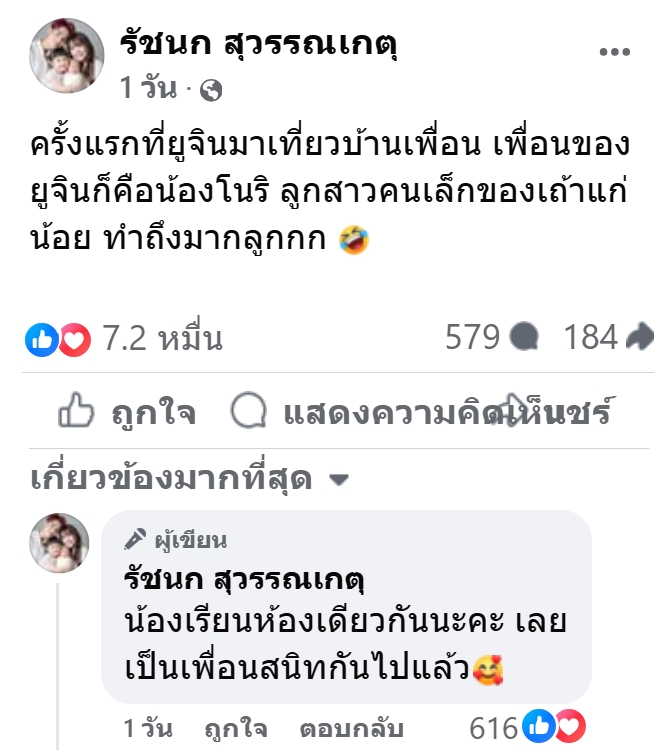 ครั้งแรกที่ยูจินมาเที่ยวบ้านเพื่อน เพื่อนของยูจินก็คือน้องโนริ ลูกสาวคนเล็กของเถ้าแก่น้อย ทำถึงมากลูกกก น้องเรียนห้องเดียวกันนะคะ เลยเป็นเพื่อนสนิทกันไปแล้ว