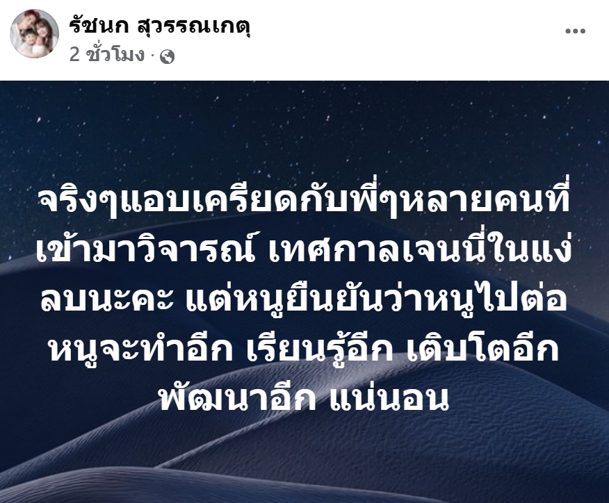 แต่หนูยืนยันว่าหนูไปต่อ หนูจะทำอีก เรียนรู้อีก เติบโตอีก พัฒนาอีก แน่นอนค่ะ ❤️”