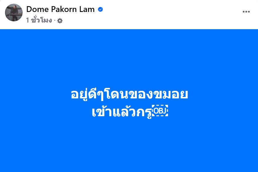 ล่าสุดมีรายงานว่า คุณโดม ปกรณ์ ลัม ได้โพสต์ข้อความ ระบุว่า “อยู่ดีๆ โดนของขมอยเข้าแล้วกรู”