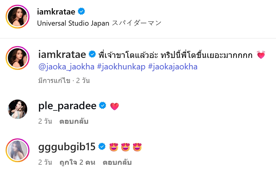 ท่ามกลางคอมเม้นจากชาวเน็ตไม่ว่าจะเป็น “พี่เจ้าขาโตไวมากกกกก น่ารักสุด ๆ” “เหมือนคุณแม่ไม่มีผิดเลยค่ะ!” “แป๊บเดียวเอง โตเป็นสาวแล้ว” “ยิ่งโตยิ่งสวย น่ารักมากลูก” “เห็นตั้งแต่เด็ก ตอนนี้กลายเป็นสาวเต็มตัวแล้ว” เป็นต้น