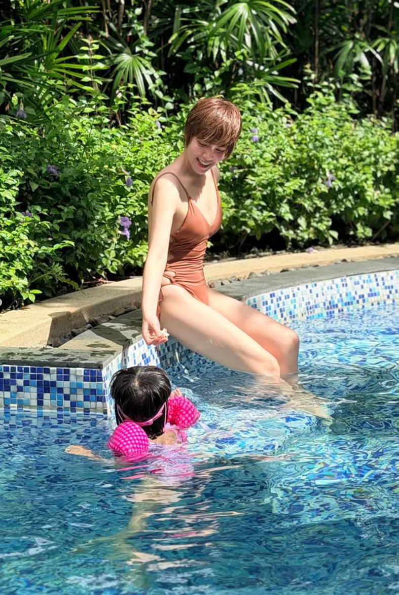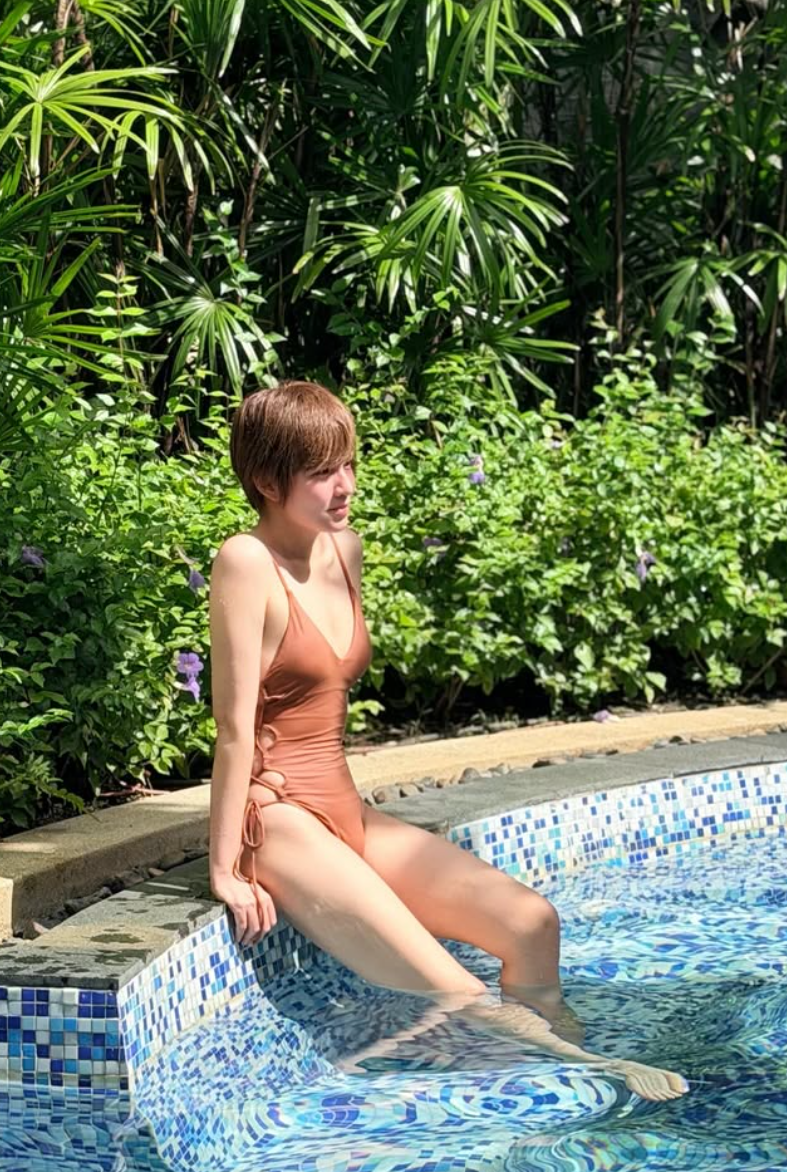 โดยเธฮได้ออกมาเผยมุมแซ่บในชุดว่ายน้ำวันพีช โชว์สัดส่วนสวยสะดุดตา เล่นน้ำคลายร้อนพร้อมกับลูกแฝดทั้งสองคน บอกเลยว่าภาพเซตนี้คุณแม่ยังดูสวยและมีออร่าไม่เปลี่ยน