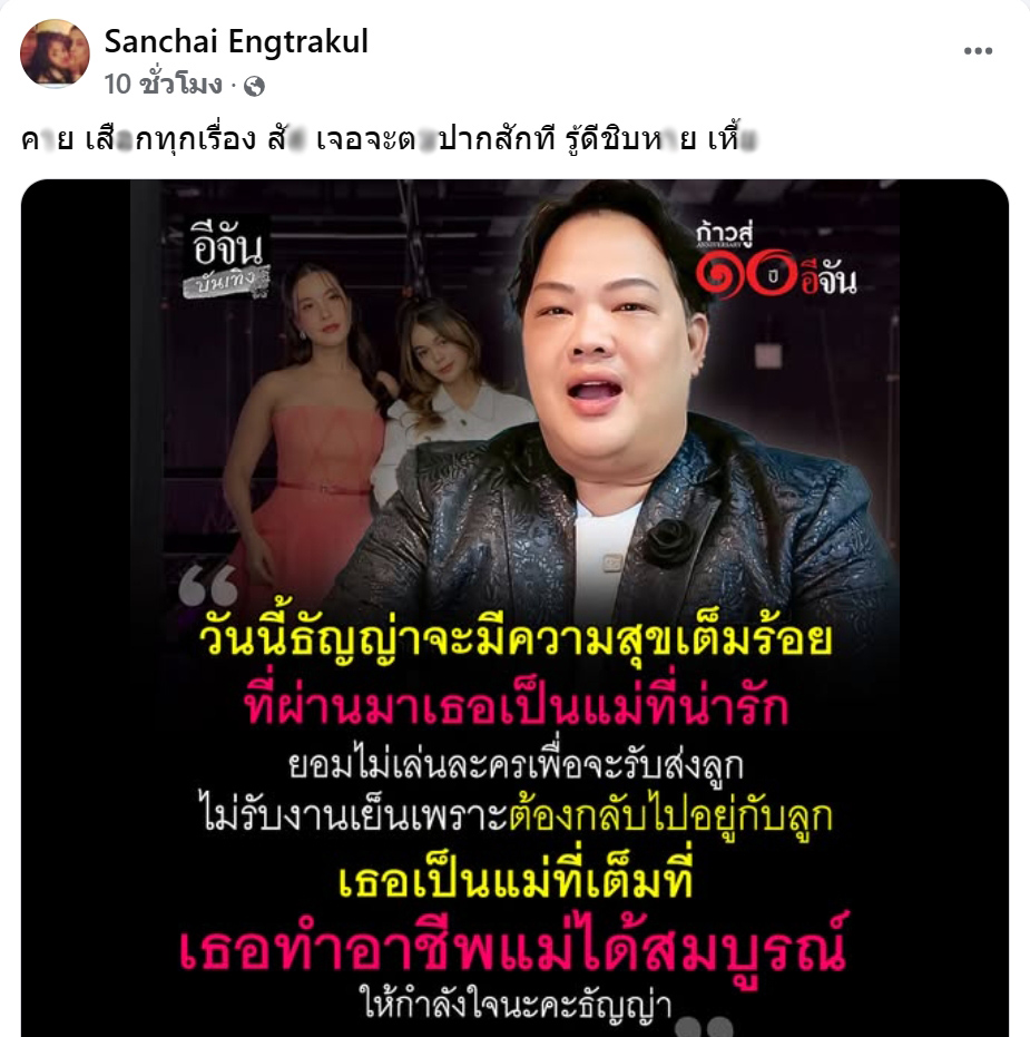 ท่ามกลางสถานการณ์ที่หลายคนกำลังจับตามอง พร้อมเขียนแคปชั่นสั้นๆ ประกอบโพสต์ว่า “–วย เ-ือกทุกเรื่อง -ัส เจอจะต-ปากสักที รู้ดีชิบห-ย เ-ี้ย” หลัง เป๊ก สัณชัย โพสต์ข้อความดังกล่าว ก็มีชาวเน็ตเข้ามาคอมเมนต์พูดคุยกันเพียบ บางคนก็แซว บางคนก็ส่งกำลังใจ