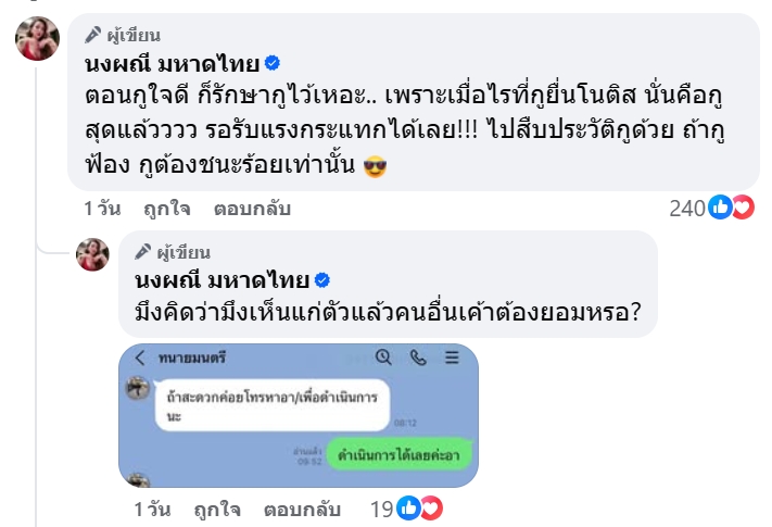 พร้อมยังทิ้งท้ายประโยคดุเดือดว่า