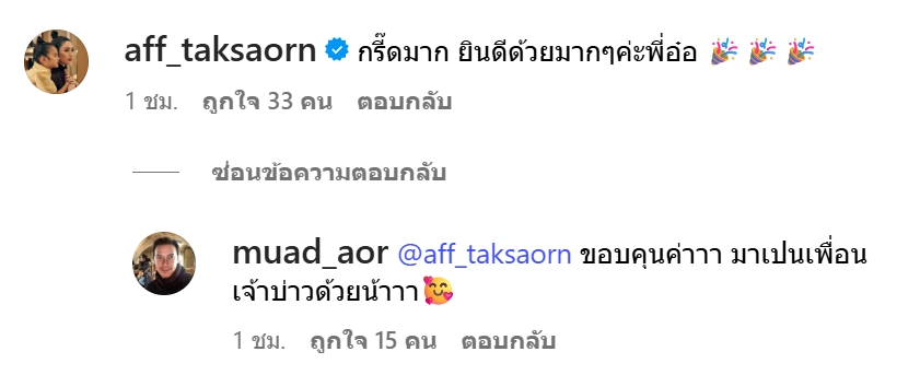“กรี๊ดมาก ยินดีด้วยมากๆค่ะพี่อ๋อ 🎉🎉🎉”