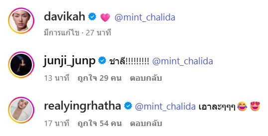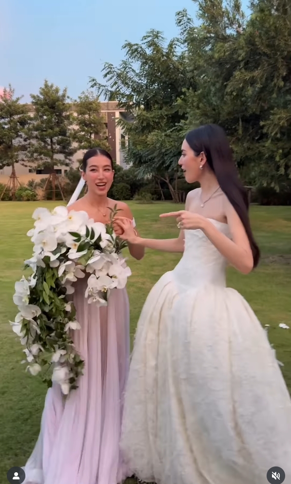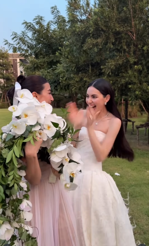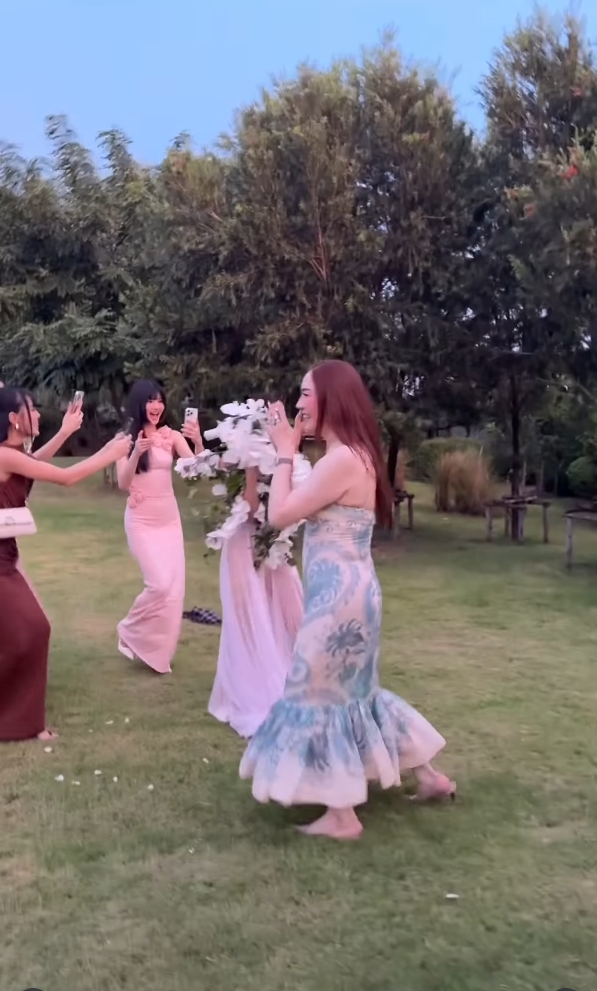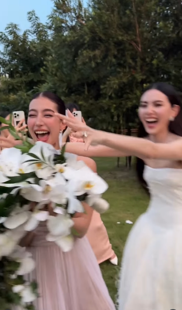 และหนึ่งในโมเมนต์ที่หลายคนจับตามองก็คือ ช่วงรับช่อดอกไม้เจ้าสาว ซึ่งต้องบอกเลยว่าผู้ที่ได้ไปครอบครองช่อดอกไม้ในงานครั้งนี้ก็คือ มิ้นต์ ชาลิดา นางเอกสาวคนสวย และหวานใจของ ภูผา เตชะณรงค์ ภูผา เตชะณรงค์ และที่สำคัญคือ ภูผา เตชะณรงค์ แฟนหนุ่มของมิ้นต์ ยังยืนถ่ายคลิปเก็บโมเมนต์นี้ด้วยตัวเองอีกด้วย