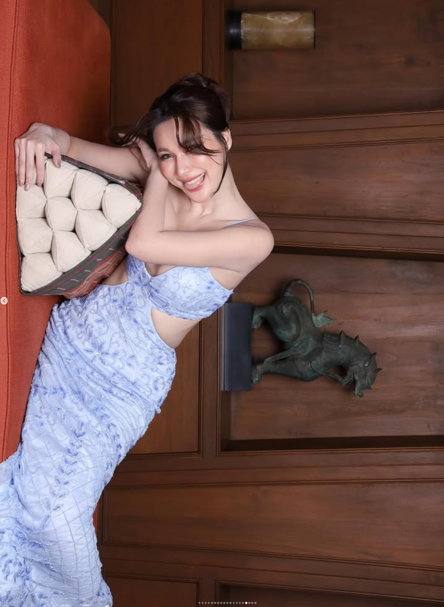 เมื่อเธอมาในลุคออกงานที่ดูสวยสะกดตาในชุดเดรสทั้งแหวกอก เว้าเอว เผยสัดส่วนสุดเป๊ะปัง สาดผิวขาวออร่าอยู่บนเรือ บอกเลยว่างานนี้ทั้งสวยทั้งเซ็กซี่ดาเมจพุ่งสุดๆ