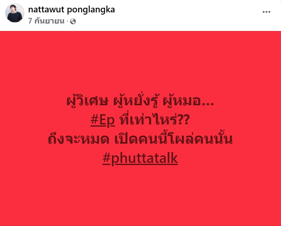 ซึ่งล่าสุดทางทีมงานได้เข้าไปในเฟสบุค nattawut ponglangka โพสต์ล่าสุดก็เสียชีวิตที่มีข้อความว่า ผู้วิเศษ ผู้หยั่งรู้ ผู้หมอ… #Ep ที่เท่าไหร่?? ถึงจะหมด เปิดคนนี้โผล่คนนั้น #phuttatalk