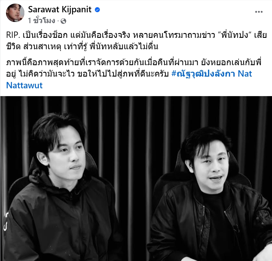 ล่าสุดทางด้าน ไอซ์ สารวัตร ออกมาเคลื่อนไหวหลังจากที่ได้ทราบข่าวการเสียชีวิตของ นัท -ณัฐวุฒิ ผู้สื่อข่าวช่อง 8 โดยได้ออกมาเคลื่อนไหวโพสต์ข้อความว่า RIP. เป็นเรื่องช็อก แต่มันคือเรื่องจริง หลายคนโทรมาถามข่าว ”พี่นัทปง“ เสียชีวิต ส่วนสาเหตุ เท่าที่รู้ พี่นัทหลับแล้วไม่ตื่น