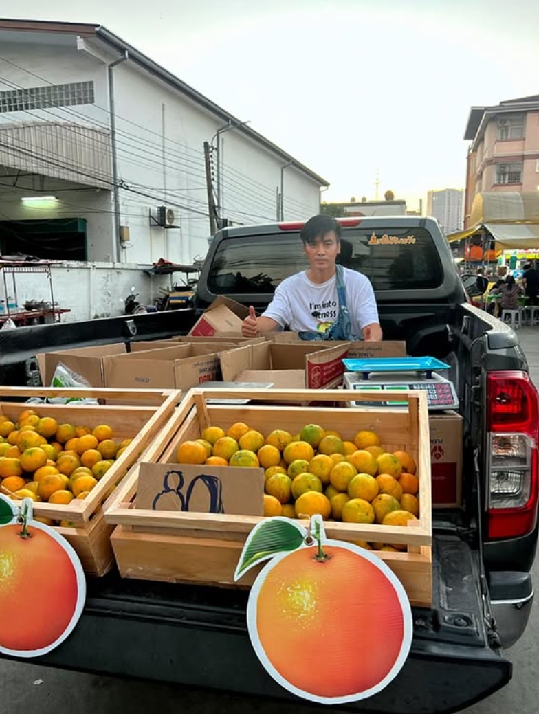 ล่าสุดเปิดท้ายรถกระบะขายส้มระบุว่า อุดหนุนส้มฝาง ของอ้ายด้วยนะครับ
