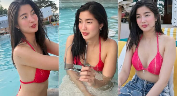 นั่งชิลริมสระว่ายน้ำ มาในลุคบิกินี่ชมพูสดใส อวดผิวเนียนกริบ โพสท่าแต่ละช็อตมีความสวยแซ่บ เกินห้ามใจสุดๆ ทำเอาบรรดาแฟนคลับตามเข้ามากดไลค์กันสนั่น