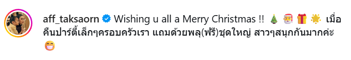 โดยทางอินสตาแกรมส่วนตัวของแม่แอฟ ได้ออกมาเปิดภาพความอบอุ่น พร้อมแคปชั่นว่า Wishing u all a Merry Christmas !! 🎄🎅🎁🌟 เมื่อคืนปาร์ตี้เล็กๆครอบครัวเรา แถมด้วยพลุ(ฟรี)ชุดใหญ่ สาวๆสนุกกันมากค่ะ 😁