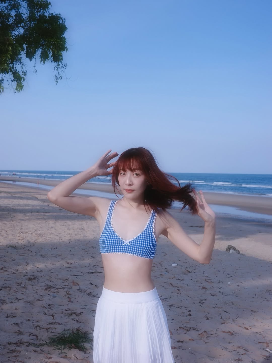 โดยเธอเขียนแคปชั่นว่า “🌊☀️”