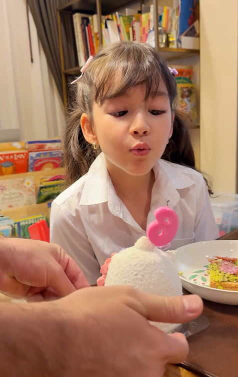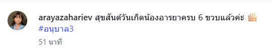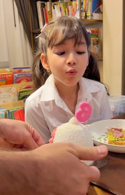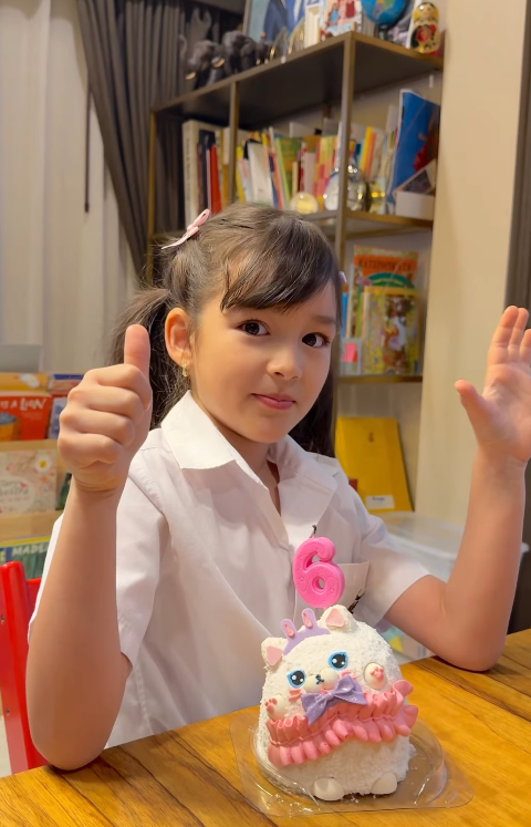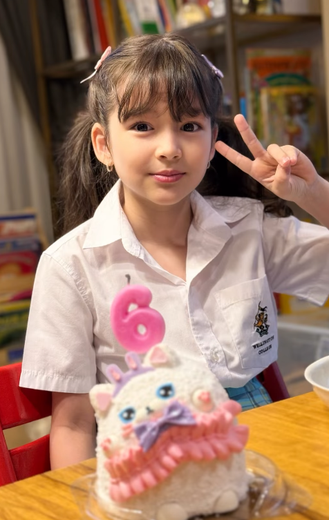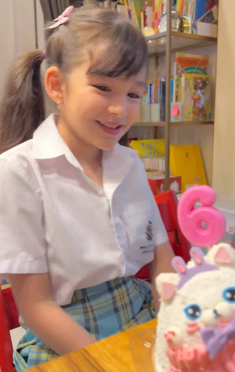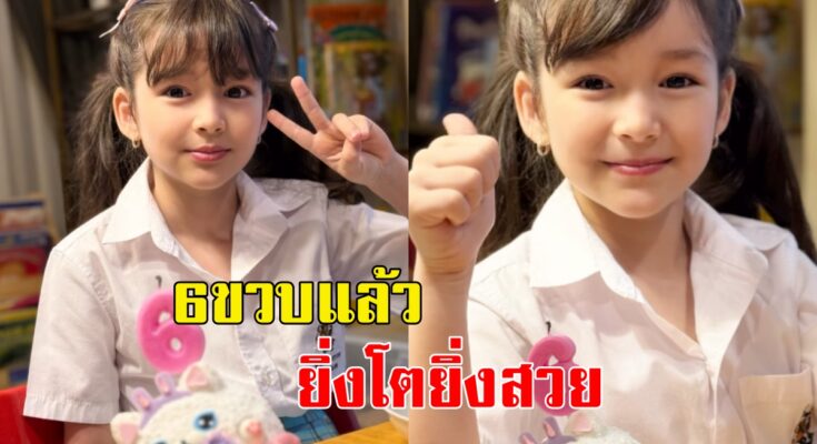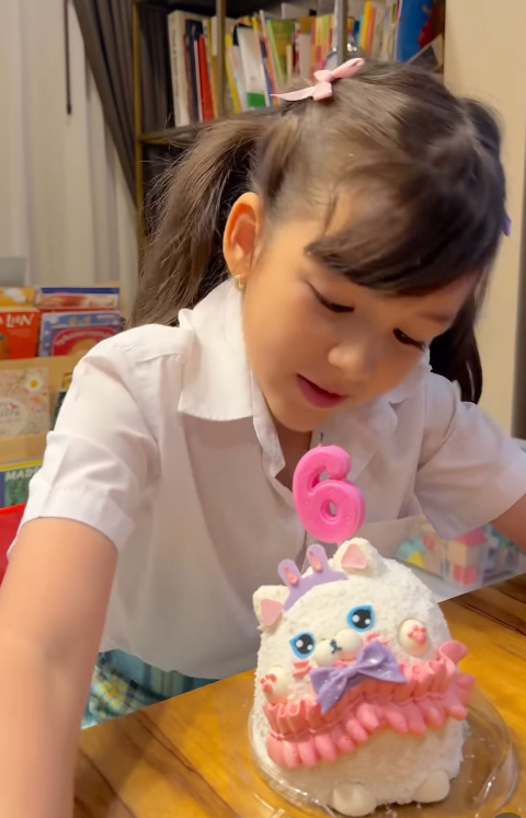 น้องอารยา ฉลองวันเกิดเป่าเค้กต้อนรับอายุ 6 ขวบเต็ม พร้อมข้อความว่า สุขสันต์วันเกิดน้องอารยาครบ 6 ขวบแล้วค่ะ 🎂 #อนุบาล3 บอกเลยว่าโตไวมาก ฉายแววความสวยหวานละมุนได้ทั้งคุณพ่อและคุณแม่มาเลยจ้า