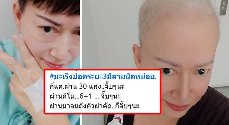 “หลายเดือนที่ผ่านมาเรียกว่าข้ามปีกันเลยทีเดียว สิ่งที่ผู้หญิงคนนี้เจอ.. #มะเร็งปอดระยะ3มีลามนิดหน่อย.ก็แค่.ผ่าน 30 แสง..จิ๊บๆนะ ผ่านคีโม…6+1 ….จิ๊บๆนะ ผ่านมาจนถึงคิวผ่าตัด..ก็จิ๊บๆนะ. ต้องอดทนสุดๆต้องสู้ให้สุดๆ เพื่อให้ผ่านทุกขั้นตอน #เพื่อเป้าหมายว่าฉันต้องหาย #และโลกสงบแบบยาวนานๆนะ #ขอให้ผ่านแบบจิ๊บนะ…. #สุดท้ายล่ะ คุณหมอ##เพิ่มคีโมอีก3เข็ม. เริ่ม26/2นี้.. #ก็แค่เรื่องจิ๊บๆนะ. แค่ต้องโกนผมอีกรอบนะ.. ยิ้มสวยๆสู้ไปแบบจิ๊บๆนะแหม่ม.”