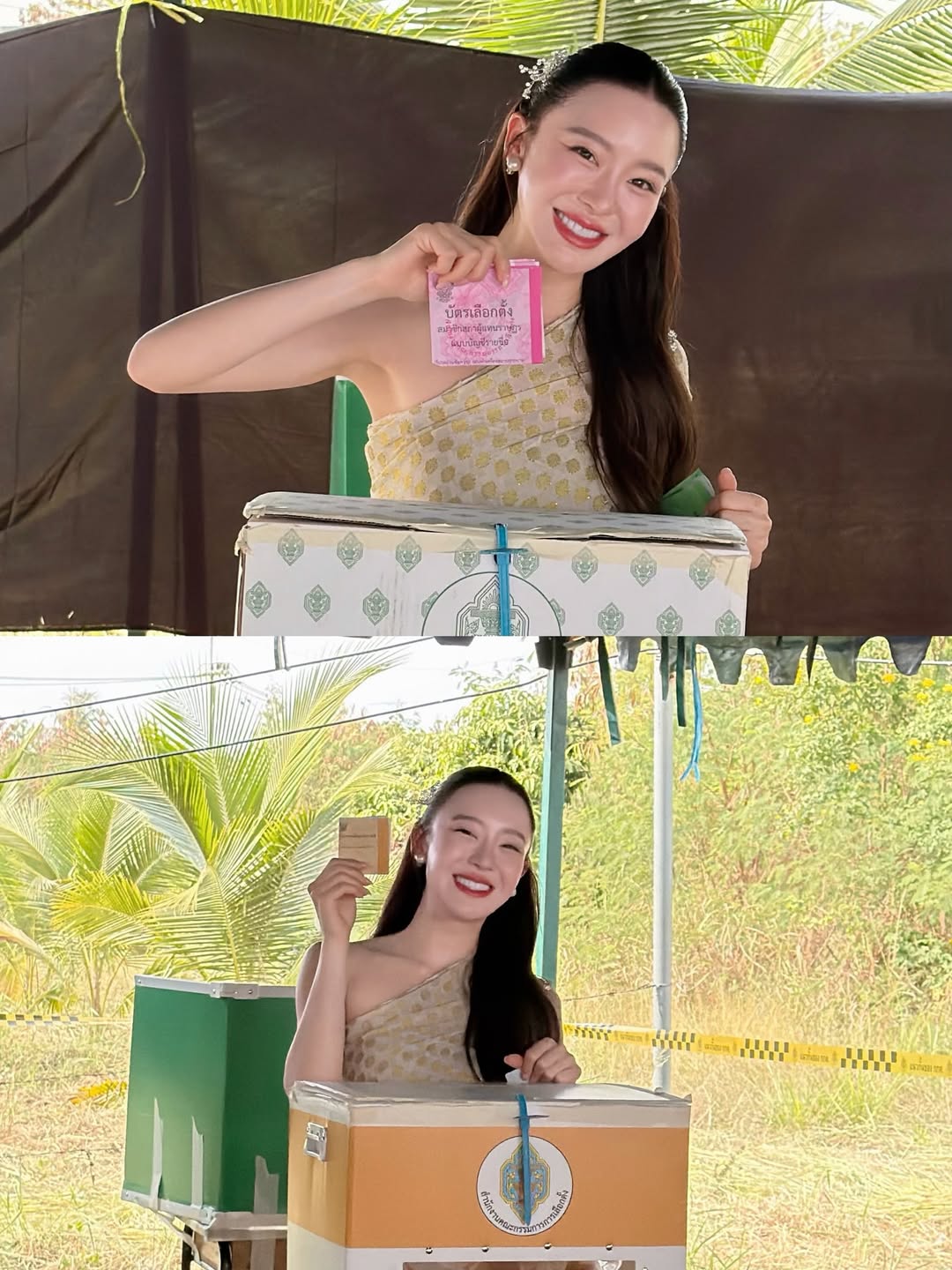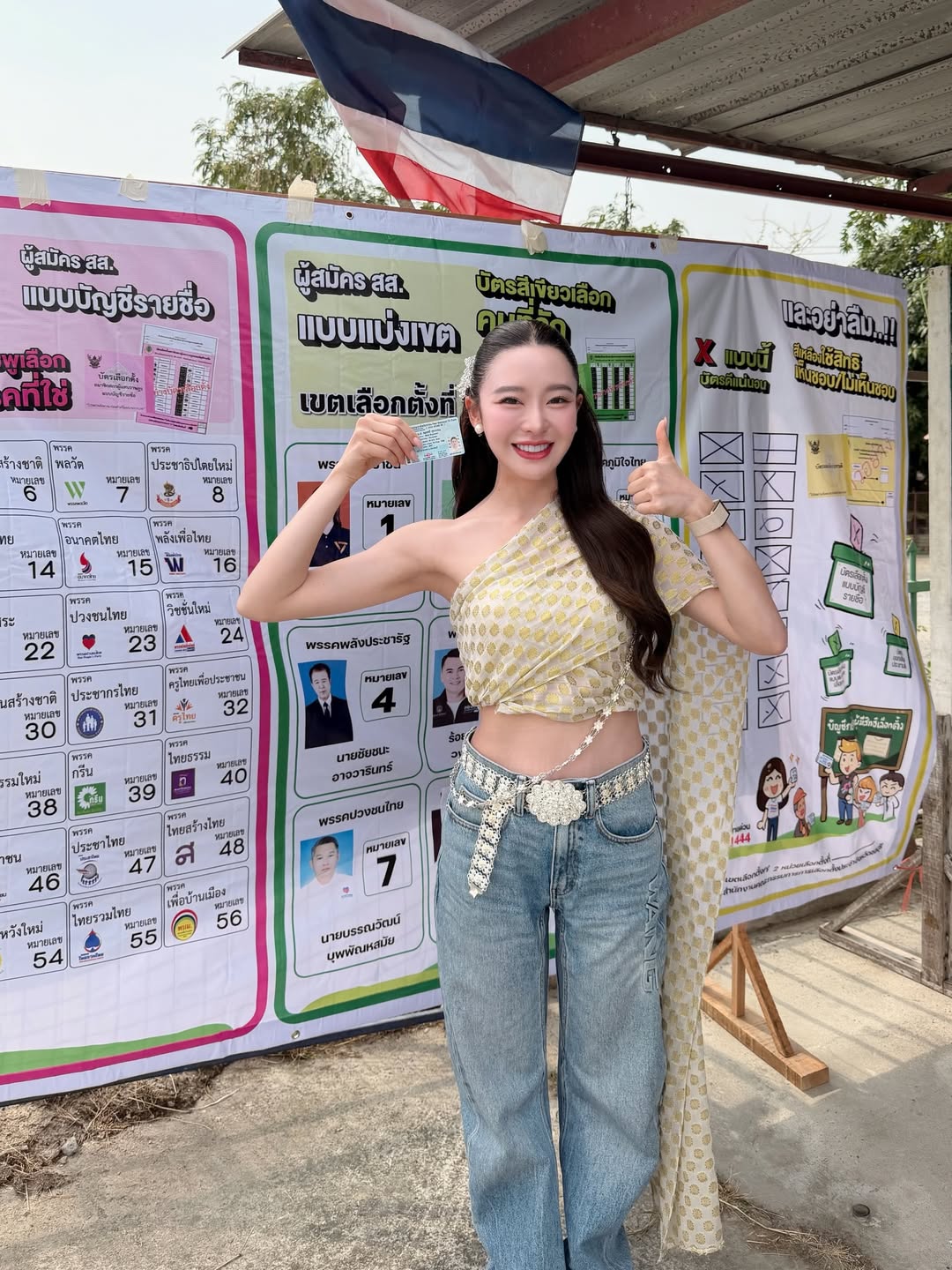 สำหรับสาว “มายด์ ณภศศิ” ที่วันเลือกตั้งปี 69 นี้ แม่ขอพักโหมดเซ็กซี่ชั่วคราว เปลี่ยนมาสวมชุดไทยเต็มยศทำหน้าที่พลเมืองดี ทำเอาหลายคนต้องเหลียวหลังมองกันทั้งหน่วยเลือกตั้งเลยค่ะ โดยจัดเต็มในชุดไทยประยุกต์ที่สวยสะกดสายตาแบบสุดๆ