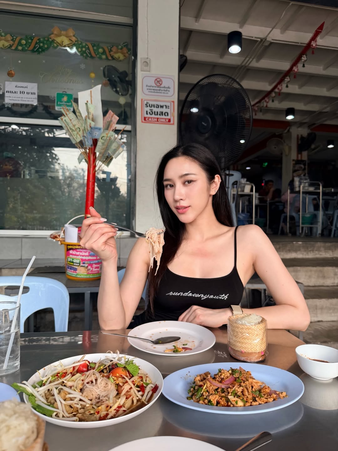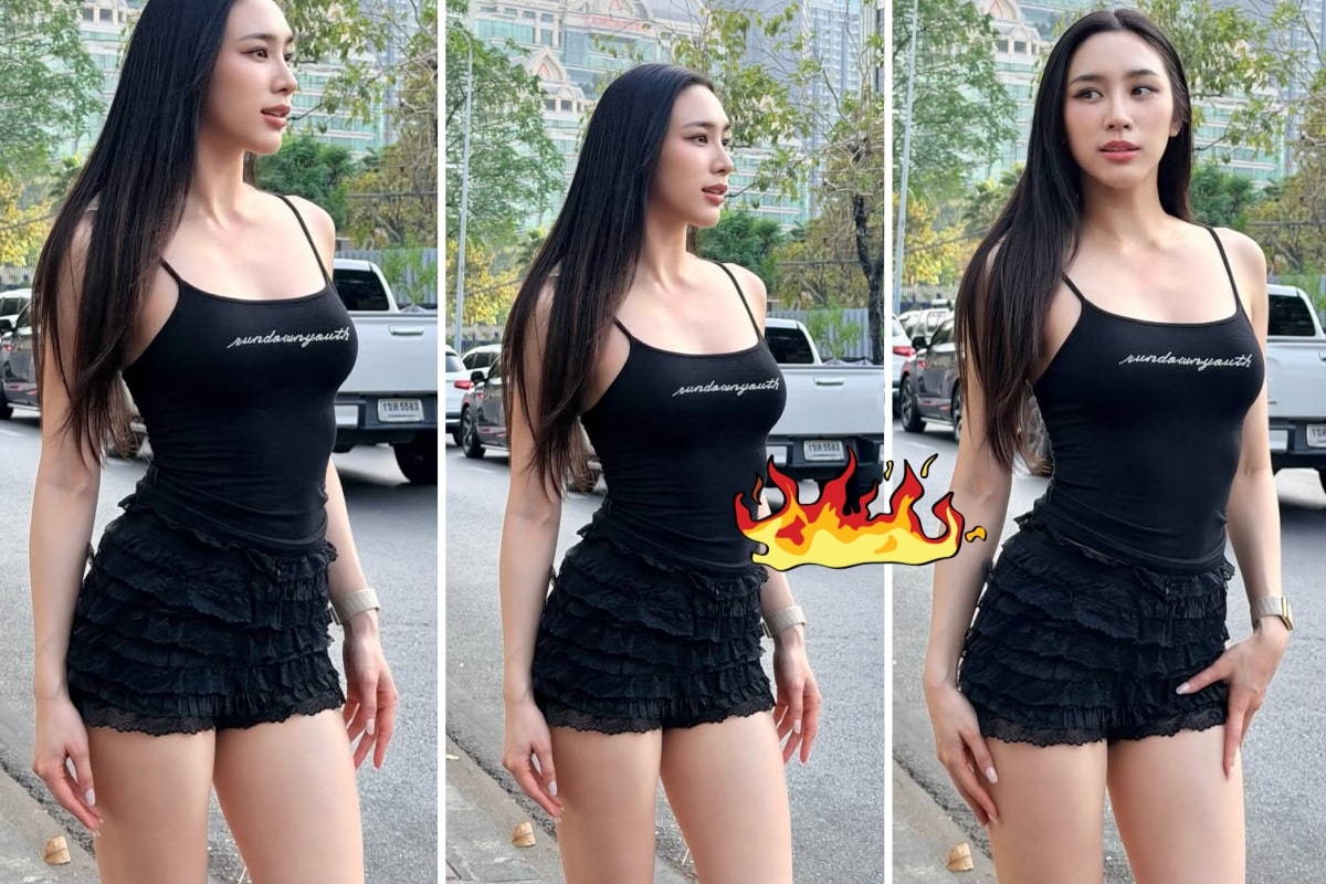 พลอยมาในชุดสายเดี่ยวสีดำเข้ารูป ผิวขาวออร่าที่ตัดกับสีชุดแบบสุดๆ แมตช์กับกางเกงขาสั้นสีดำเข้าชุดที่มีดีเทลเป็นชั้นๆ ทำให้ขาดูเรียวยาวขึ้นไปอีก แม้จะยืนโพสต์ท่าชิลๆ อยู่ริมถนนที่มีรถติด แต่ความสวยนั้น บอกเลยว่า 10 เต็ม 10 ไม่มีหัก