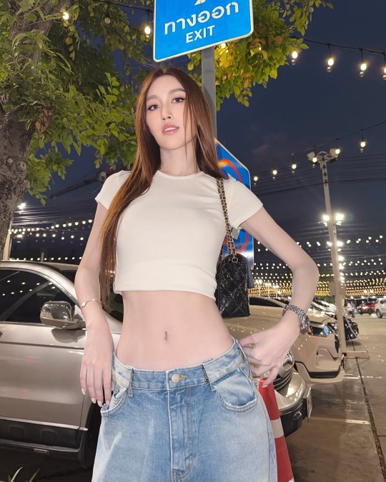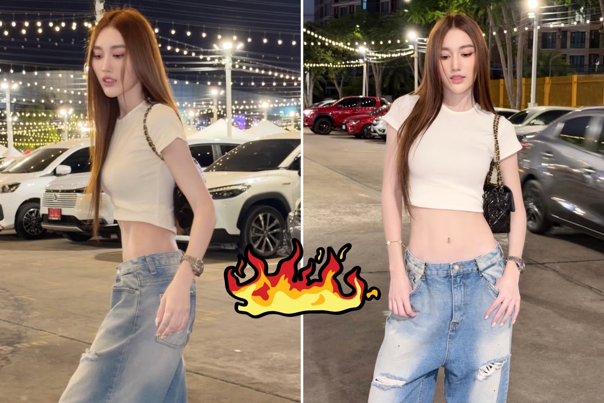 น้องเบสท์มาในลุคเสื้อยืดสีครีมเอวลอยตัวจิ๋ว ที่เผยให้เห็นช่วงเอวที่คอดกิ่วและหน้าท้องที่แบนราบแบบไม่มีที่ติ แมตช์กับกางเกงยีนส์ทรงเท่ๆ ที่ดูเข้ากันได้ดี ยิ่งทำให้ช่วงขาดูเรียวยาวและหุ่นดูโปร่งขึ้นไปอีกค่ะ บอกเลยว่าดาเมจแรงมาก
