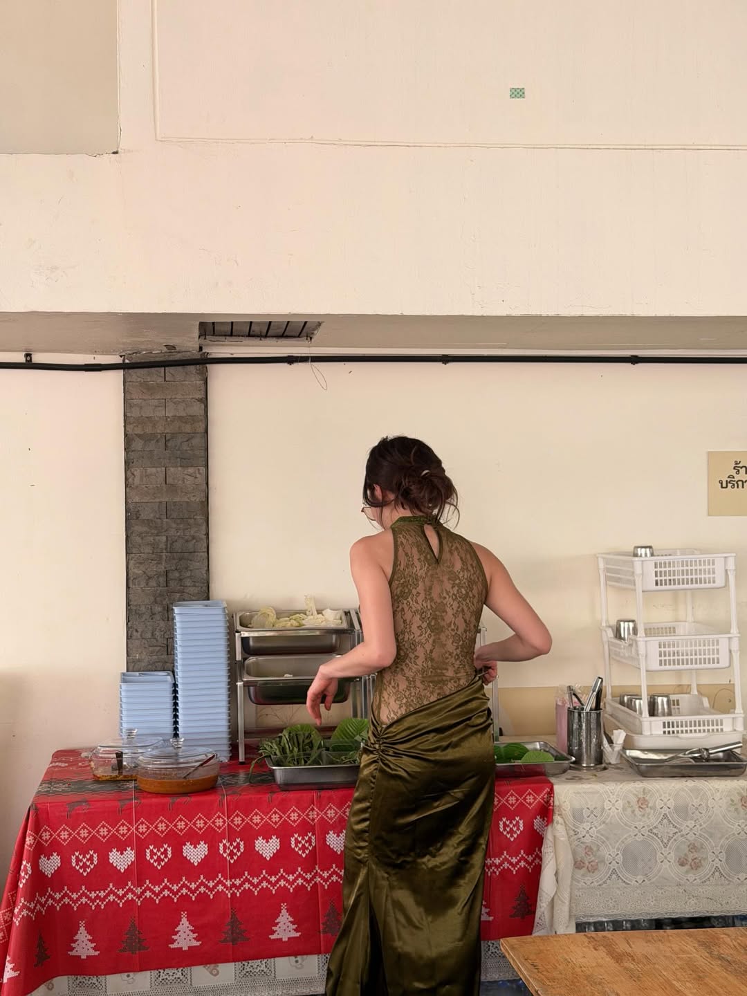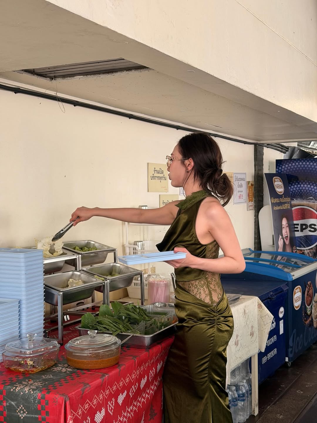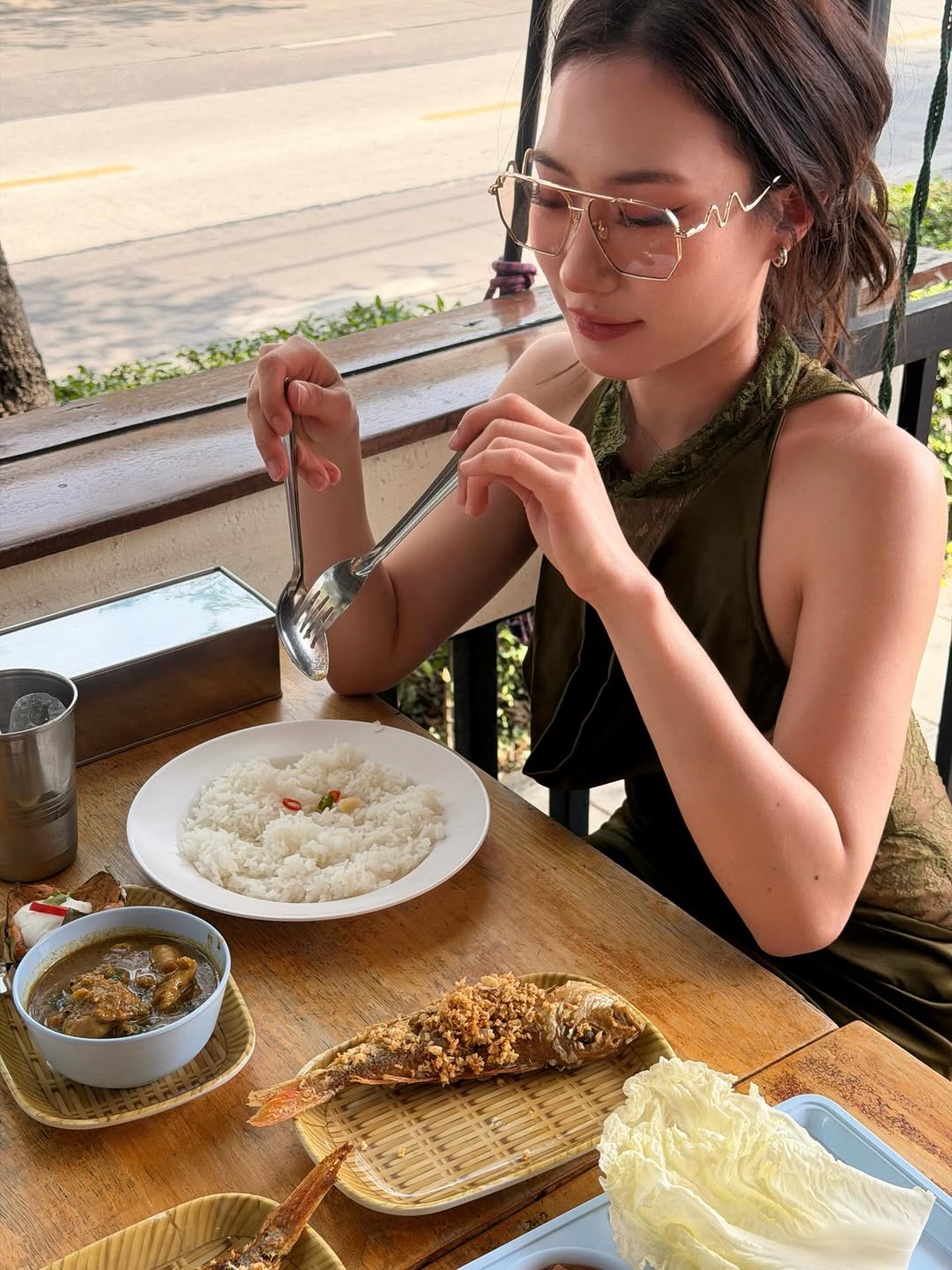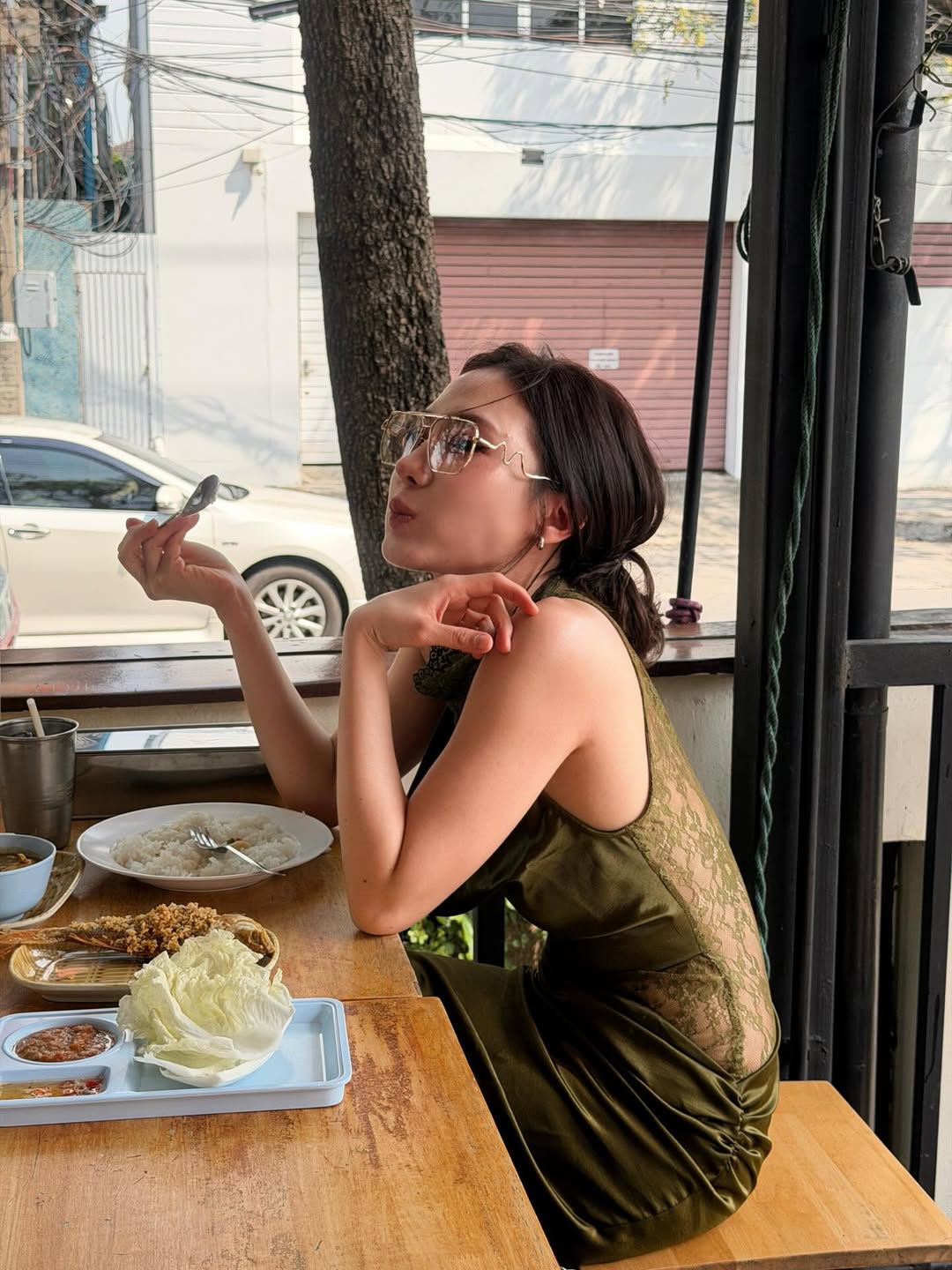 ล่าสุดเจ้าตัวโพสต์ภาพลงไอจีในชุดเดรสลูกไม้สีเขียวสุดหรู เข้ากับบรรยากาศร้านข้าวแกงแบบสุดขั้ว พร้อมแคปชั่นเด็ดที่ทำเอาแฟนคลับแห่กดไลก์รัวๆ ว่า “ถ้าใจเราได้ ชุดไหนก็กินข้าวแกงได้ปะ”