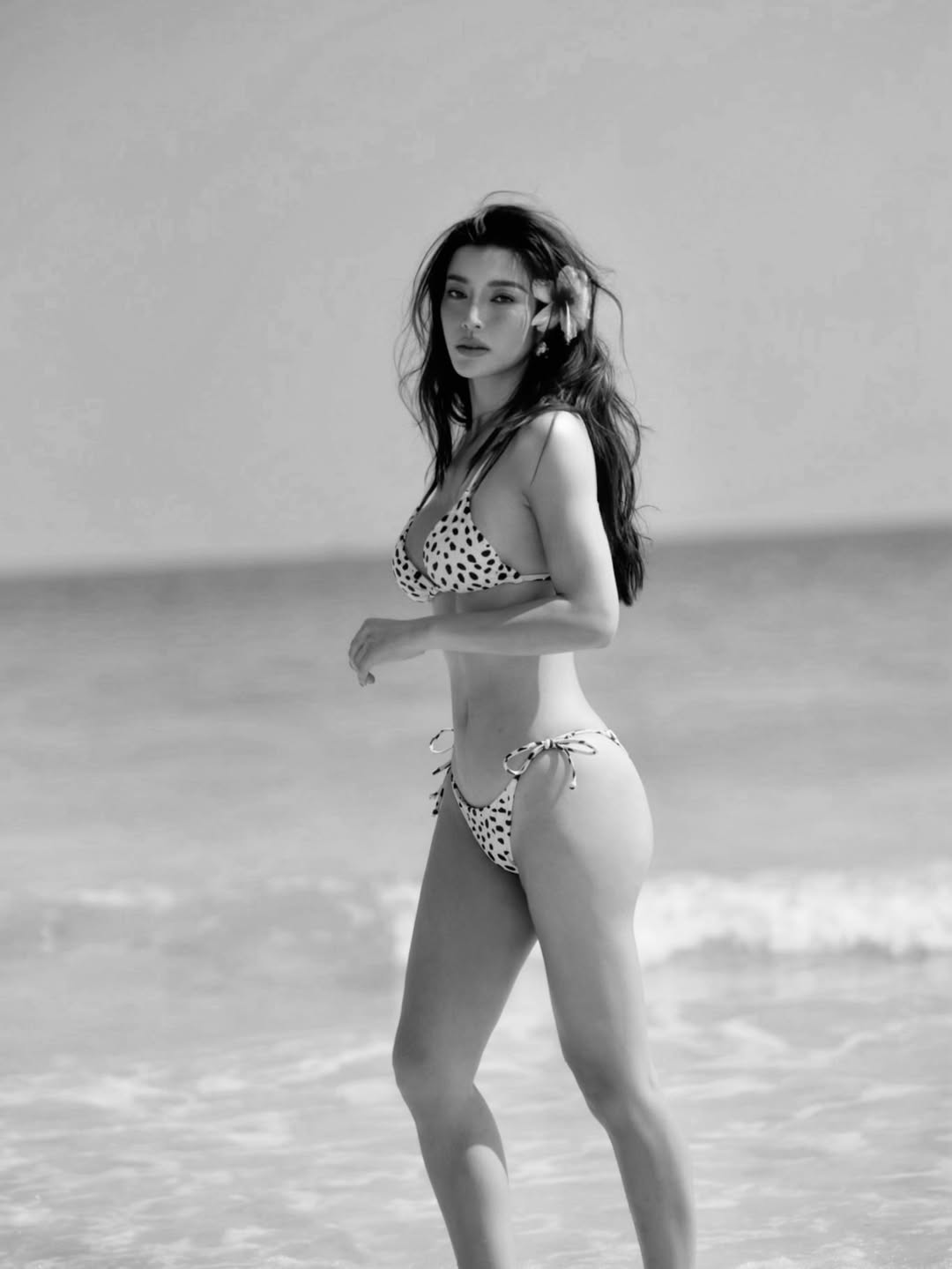 ในภาพล่าสุด เอมี่ มาในลุคบิกินี่ลายจุดสุดคลาสสิก เผยให้เห็นรูปร่างที่เป๊ะปังทุกสัดส่วน ทั้งหน้าท้องที่แบนราบและผิวพรรณที่ดูสุขภาพดีสะท้อนแสงแดด เพิ่มลูกเล่นความเซ็กซี่ขยี้ใจด้วยการติดดอกไม้สีหวานไว้ที่ใบหู และรองเท้าส้นสูงลายม้าลายที่คอมพลีทลุคให้ดูเป็นนางพญาจัดเต็ม
