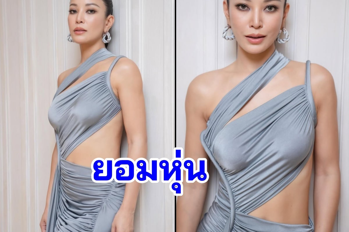 มาในชุดเดรสยาวสีเทาเมทัลลิกที่มีดีไซน์สุดเก๋ แหวกเว้าช่วงเอวและด้านข้าง เผยให้เห็นส่วนโค้งเว้าสุดเป๊ะและผิวพรรณที่ดูสุขภาพดีแบบสุดๆ