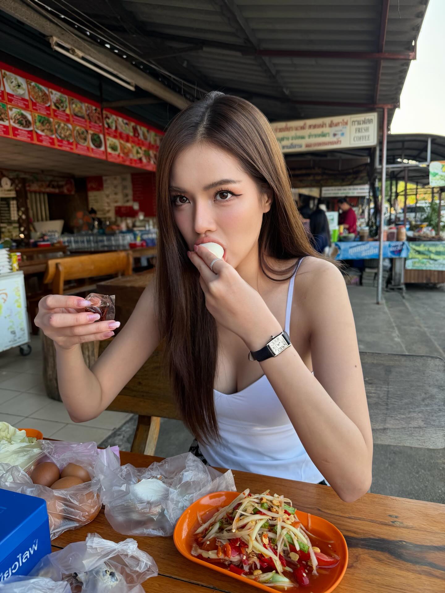 งานนี้ทำเอาชาวเน็ตแห่คอมเมนต์ชื่นชมในความน่ารัก ติดดิน และเป็นกันเองของเธอ บอกเลยว่าสวยออร่าทะลุร้านส้มตำจริงๆ ค่ะ!
