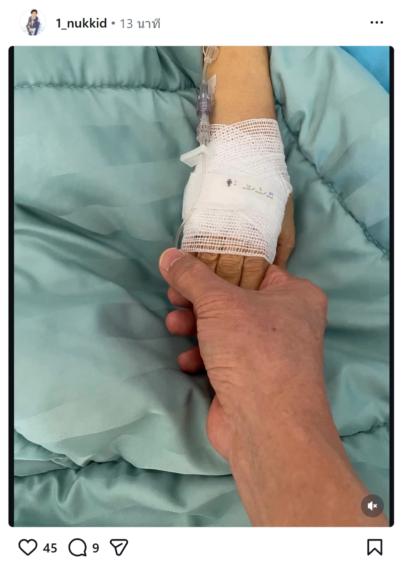 ในโพสต์ดังกล่าวเป็นภาพมือของ “หนึ่ง นึกคิด” ที่กำลังกุมมือของคุณแม่มุกดาเอาไว้แน่นบนเตียงคนไข้ เจ้าตัวระบุไว้ว่า “ให้เจ็บปวด ทุกข์ทรมาน แทนกันได้ก็ยอม” ต่อมาบรรดาแฟนคลับและคนในวงการบันเทิงต่างพากันเข้ามาคอมเมนต์