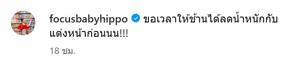 ออกมาเปิดภาพความสวยลุคใหม่ ที่มีความสวยเป๊ะทุกองศา ออร่าความสวยพุ่งแรงแบบฉุดไม่อยู่ นอกจากความสวยที่โดดเด่นแล้ว หลายคนยังโฟกัสไปที่รูปร่างของ โฟกัส ที่ดูผอมเพรียวขึ้นอย่างเห็นได้ชัด โดยระบุข้อความว่า “ขอเวลาให้ช้านได้ลดน้ำหนักกับแต่งหน้าก่อนนน!!!”