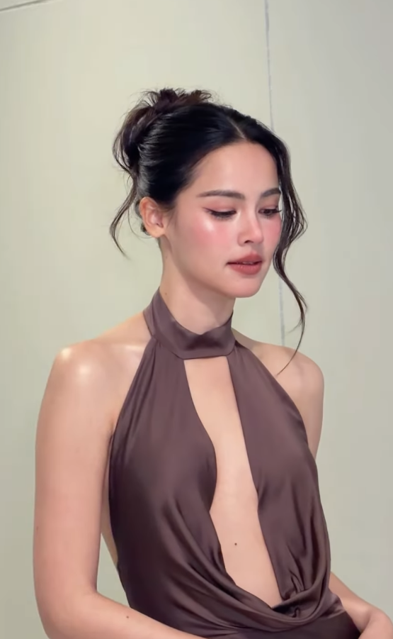 ลุคล่าสุดของเจ้าตัวมาในชุดเดรสสีน้ำตาลดีไซน์เว้าลึก เผยความเซ็กซี่แบบพอดี ผสมความเรียบหรูอย่างลงตัว พร้อมเมคอัพโทนละมุนและผมรวบเก๋ๆ ยิ่งขับให้ใบหน้าดูสวยคม ออร่าจับแบบเต็มสิบไม่มีหักที่ไม่ว่าจะอยู่ในโมเมนต์ไหนก็เอาอยู่ทุกลุค