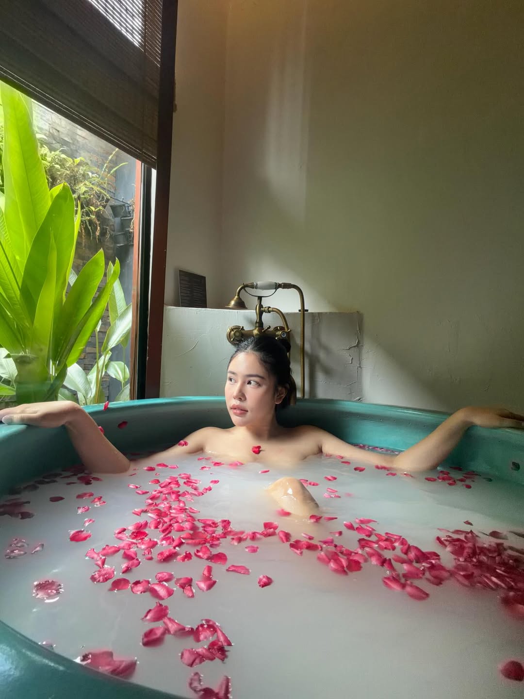 ในภาพ นาฟ นั่งเอนตัวในอ่างอาบน้ำ เผยผิวเนียนใสท่ามกลางน้ำนมและกลีบกุหลาบ เป็นความเซ็กซี่ที่ดูดี ไม่แรงเกิน แต่มีเสน่ห์ โดยเจ้าตัวได้โพสต์ภาพพร้อมแคปชั่นสั้นๆว่า “✨🤍”