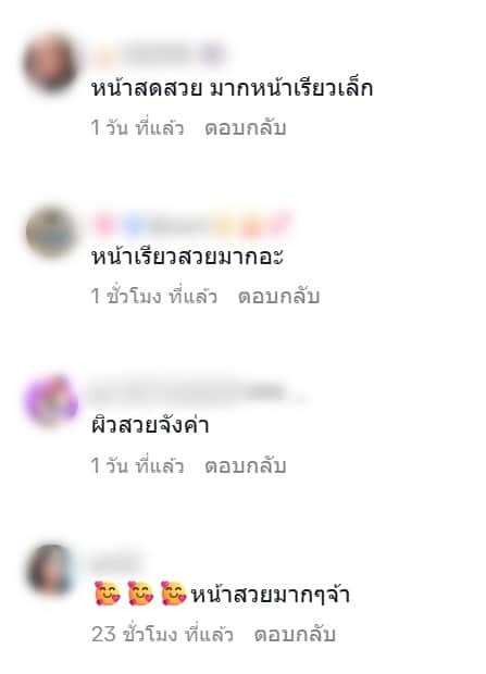 งานนี้แฟนๆ ไม่พลาดเข้ามาคอมเมนต์กันเพียบ อาทิ “หน้าสดสวยมาก หน้าเรียวเล็ก”, “ผิวดีมาก”, “สวยธรรมชาติมาก” เรียกว่าคำชมมาแบบไม่ขาดสาย